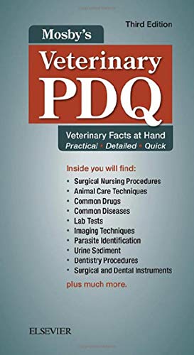 Details: Enter every examining room with confidence! Mosby’s Veterinary PDQ, 3rd Edition is the pocket-sized reference that provides you with quick access to hundreds of veterinary medicine facts, formulas, lab values, and procedures. Ideal for the clinical setting, coverage includes key topics such as pharmacology, math, animal care, common diseases, diagnostic procedures, imaging techniques, parasite identification, urinalysis, blood tests, and other lab work. This full-color new edition is divided into 10 easy-to-use sections, to help you quickly find what you need to deliver safe and efficient veterinary care. Valuable formulas, conversions, and lab values make it easy to look up the data needed to deliver safe and effective veterinary care. Full-color photos and line drawings illustrate procedures and tests, dental and surgical instruments, parasites, and urine and blood analysis. Quick-access format is organized into 10 tabbed, color-coded sections, and makes it easy to find facts quickly. Easily fits in the busy vet tech’s pocket, for ease of access and formatted to find facts quickly. Easy-to-read charts and tables provide quick access to key information that you’ll commonly use but rarely memorize. Spiral binding allows you to lay the book flat or keep it open to a page for quick reference. NEW! Current drug information covers the newest pharmacologic agents, ensuring that you are up to date with uses, adverse side effects, and dosage forms. NEW! Information on dental imaging and breathing circuits keeps you up to date on the latest techniques and equipment. NEW! Coverage of the latest testing kits keeps you up-to-date on available products. UPDATED! Information on anesthesia monitoring provides the most up-to-date information on this important topic. NEW! Updated images prepare you to perform routine procedures.