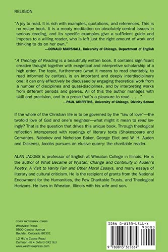 by Routledge; Reprint edition (November 28, 2001) (Author) If the whole of the Christian life is to be governed by the “law of love”―the twofold love of God and one’s neighbor―what might it mean to read lovingly? That is the question that drives this unique book. Through theological reflection interspersed with readings of literary texts (Shakespeare and Cervantes, Nabokov and Nicholson Baker, George Eliot and W. H. Auden and Dickens), Jacobs pursues an elusive quarry: the charitable reader.
