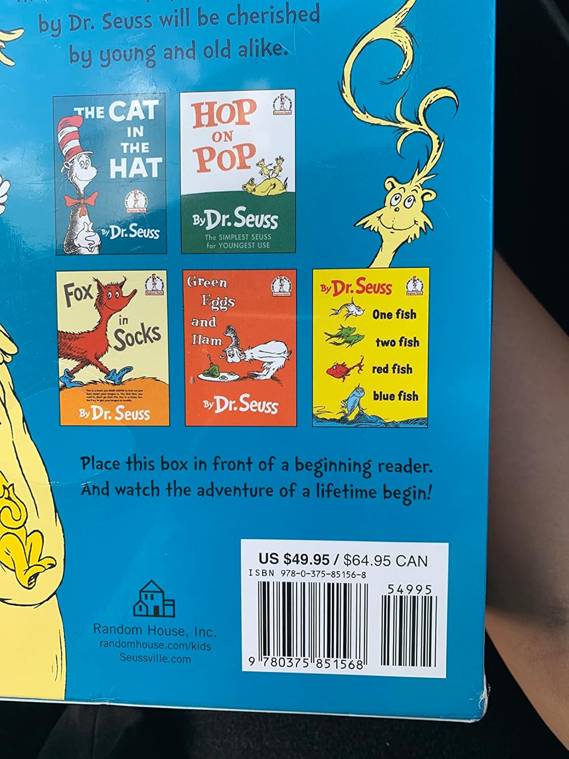 9780375851568 / Dr. Seuss’s Beginner Book Boxed Set Collection: The Cat in the Hat; One Fish Two Fish Red Fish Blue Fish; Green Eggs and Ham; Hop on Pop; Fox in Socks Hardcover – Box set, September 22, 2009