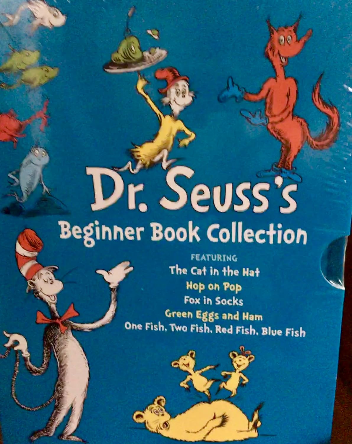 Dr. Seuss’s Beginner Book Boxed Set Collection: The Cat in the Hat; One Fish Two Fish Red Fish Blue Fish; Green Eggs and Ham; Hop on Pop; Fox in Socks Hardcover – Box set, September 22, 2009 9780375851568