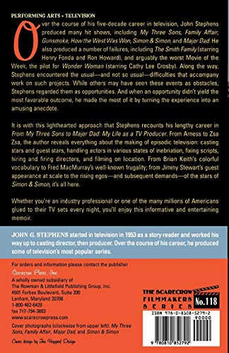 by Scarecrow Press (November 17, 2004) (Author) Over the course of his five-decade career in television, John Stephens produced many hit shows, including My Three Sons, Family Affair, Gunsmoke, How the West Was Won, and Simon & Simon. He also produced a number of failures, including The Smith Family (starring Henry Fonda and Ron Howard) and arguably the worst Movie of the Week, the pilot to Wonder Woman (starring Cathy Lee Crosby). Along the way, Stephens encountered the usual―and not so usual―difficulties that accompany work on such projects. While others may have seen these events as obstacles, Stephens regarded them as opportunities. And when an opportunity did not yield the most favorable outcome, he made the most of it by rendering the experience into an amusing anecdote.