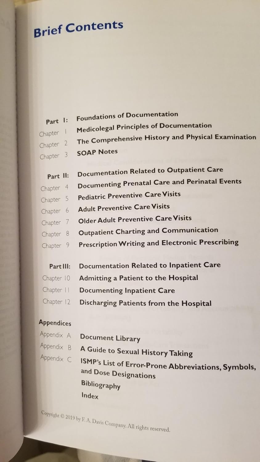 by F.A. Davis Company; Third edition (August 16, 2018) (Author)Understand the when, why, and how! Here’s your guide to developing the skills you need to master the increasing complex challenges of documenting patient care. Step by step, a straightforward ‘how-to’ approach teaches you how to write SOAP notes, document patient care in office and hospital settings, and write prescriptions. You’ll find a wealth of examples, exercises, and instructions that make every point clear and easy to understand.