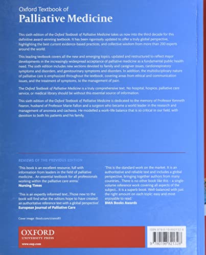The Oxford Textbook of Palliative Medicine is a truly comprehensive text. No hospital, hospice, palliative care service, or medical library should be without this essential source of information.