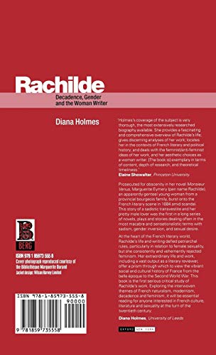 by Berg Publishers (January 12, 2001) (Author) Prosecuted for obscenity in her novel Monsieur Venus, Marguerite Eymery (pen name Rachilde), an apparently genteel young woman from a provincial bourgeois family, burst onto the French literary scene in 1884 amid scandal. This story of a sadistic transvestite and her pretty male lover was the first in a long series of novels, plays and stories dealing often in the most macabre and sensationalistic terms with sadism, gender inversion, and sexual desire. At the heart of the French literary world, Rachilde’s life and writing defied patriarchal rules, particularly in relation to female sexuality, but she consistently and vehemently rejected feminism. Her extraordinary life and work, including a vast output as a literary reviewer, offer a prism through which to view the vibrant social and cultural history of France from the belle époque to the Second World War. This book is the first serious critical study of Rachilde’s work. Exploring the interwoven themes of French naturalism, modernism, decadence and feminism, it will be essential reading for anyone interested in French culture, literature and sexuality at the turn of the twentieth century.