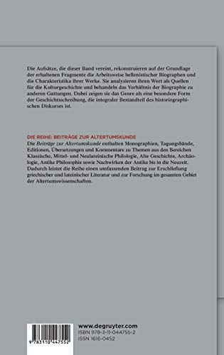 Specification: Studien zur hellenistischen Biographie und Historiographie (Beiträge zur Altertumskunde, 345) (German Edition) Hardcover – January 22, 2018 9783110447552