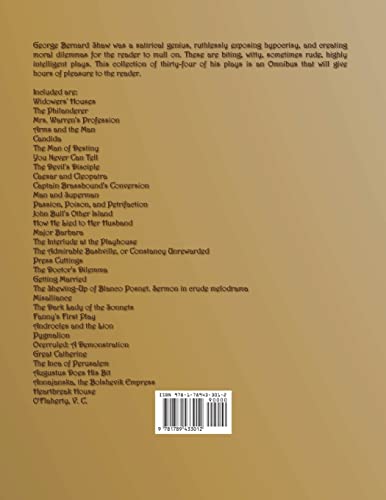 by Oxford City Press (November 23, 2021) (Author) George Bernard Shaw was a satirical genius, ruthlessly exposing hypocrisy, and creating moral dilemmas for the reader to mull on. These are biting, witty, sometimes rude, highly intelligent plays. This collection of thirty-four of his plays is an Omnibus that will give hours of pleasure to the reader.
