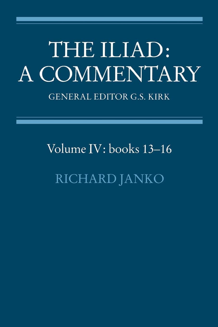 by Cambridge University Press (January 12, 2008) (Author) This, the fourth volume in the six-volume Commentary on the Iliad being prepared under the General Editorship of Professor G. S. Kirk, covers Books 13-16, including the Battle for the Ships, the Deception of Zeus and the Death of Patroklos. Three introductory essays discuss the role of Homer’s gods in his poetry; the origins and development of the epic diction; and the transmission of the text, from the bard’s lips to our own manuscripts. It is now widely recognized that the first masterpiece of Western literature is an oral poem; Professor Janko’s detailed commentary aims to show how this recognition can clarify many linguistic and textual problems, entailing a radical reassessment of the work of Homer’s Alexandrian editors. The commentary also explores the poet’s subtle creativity in adapting traditional materials, whether formulae, typical scenes, mythology, or imagery, so as best to move, inspire, and entertain his audience, ancient and modern alike. Discussion of the poem’s literary qualities and structure is, where possible, kept separate from that of more technical matters.