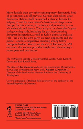 by Routledge; 1st edition (June 1, 1998) (Author) In this volume, Helmut Kohl’s leadership and legacy are assessed, and contributors analyse the chancellor’s goals and governing style, including his part in promoting European integration; and his domestic political role vis a vis his own party, its main opponents and the public.