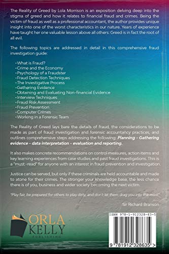 Written by a forensic accountant and fraud investigator; Lola Morrison begins by presenting the causes of fraud and how people and businesses become susceptible to being scammed. It then outlines detailed steps in fraud investigation and forensic accounting from planning, gathering evidence, data interpretation, analysis and reporting right through to detailed recommendations and control measures to be implemented.