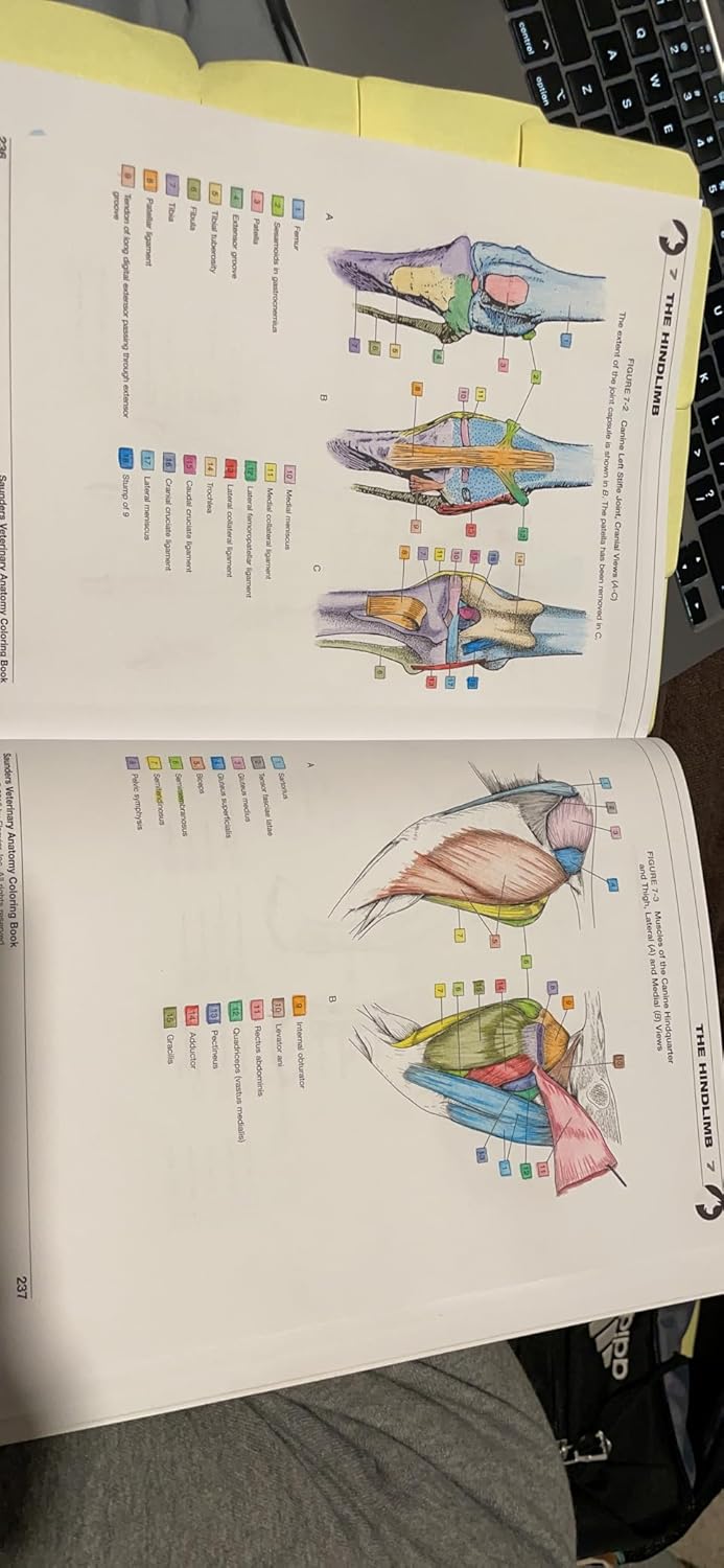 by Saunders; 2nd edition (March 26, 2015) (Author)Color your way to a complete mastery of veterinary anatomy with Veterinary Anatomy Coloring Book, 2nd Edition. Approximately 400 easy-to-color illustrations and corresponding anatomical descriptions guide you through the head, neck, back, thorax, abdomen, extremities, reproductive organs, and many more body parts of dogs, cats, horses, pigs, cows, goats, and birds. Plus, a new section on exotics takes you through the anatomy of ferrets, rodents, rabbits, snakes, and lizards to ensure you are well versed in all potential household pets. With this vivid change-of-pace study tool, you have the freedom to master veterinary anatomy in a fun and memorable way.